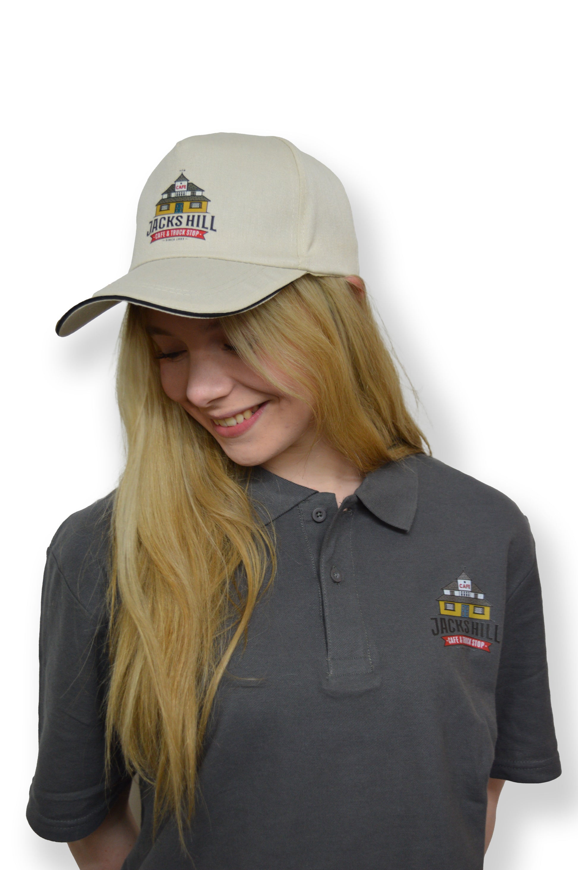 Show your love for Jack’s Hill Café & Truck Stop with this classic beige baseball cap – the perfect everyday accessory for bikers, truckers, car enthusiasts and café regulars alike.